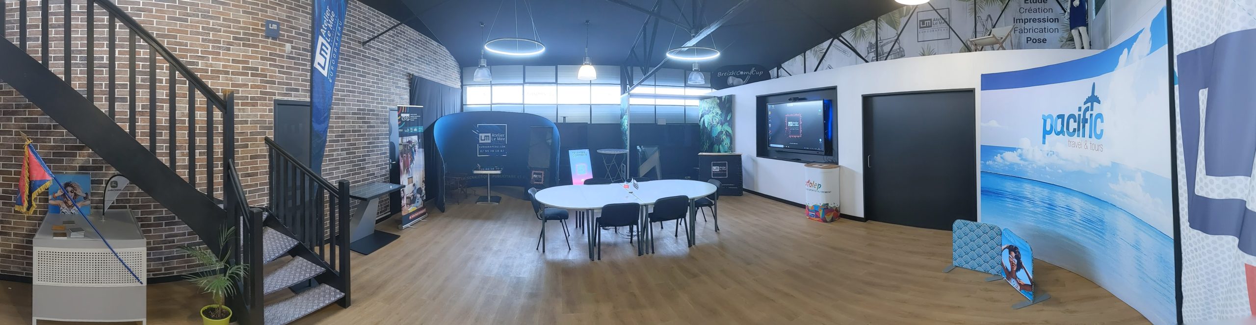 Nous faisons également des démonstrations sur notre gamme Digital : totem, chevalet à roulette, borne ou table interactive ou grand écran avec logiciel intégré … Cela est l’occasion si vous en avez le temps de visiter l’entreprise et son atelier, de rencontrer notre team et de boire un petit café.